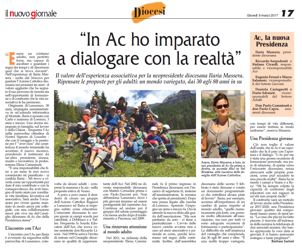 Nell’ultimo numero de Il Nuovo Giornale è pubblicata un’intervista alla nostra nuova Presidente diocesana.